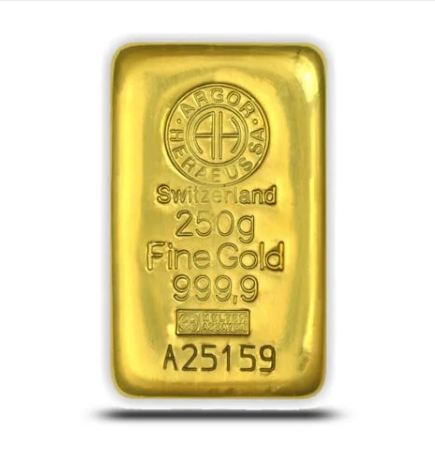 Ces lingots OR 250 grammes sont de marques VALCAMBI, ARGOR HERAEUS ou METALOR (fondeurs affineurs suisses parmi les principaux fournisseurs mondiaux de métaux précieux).